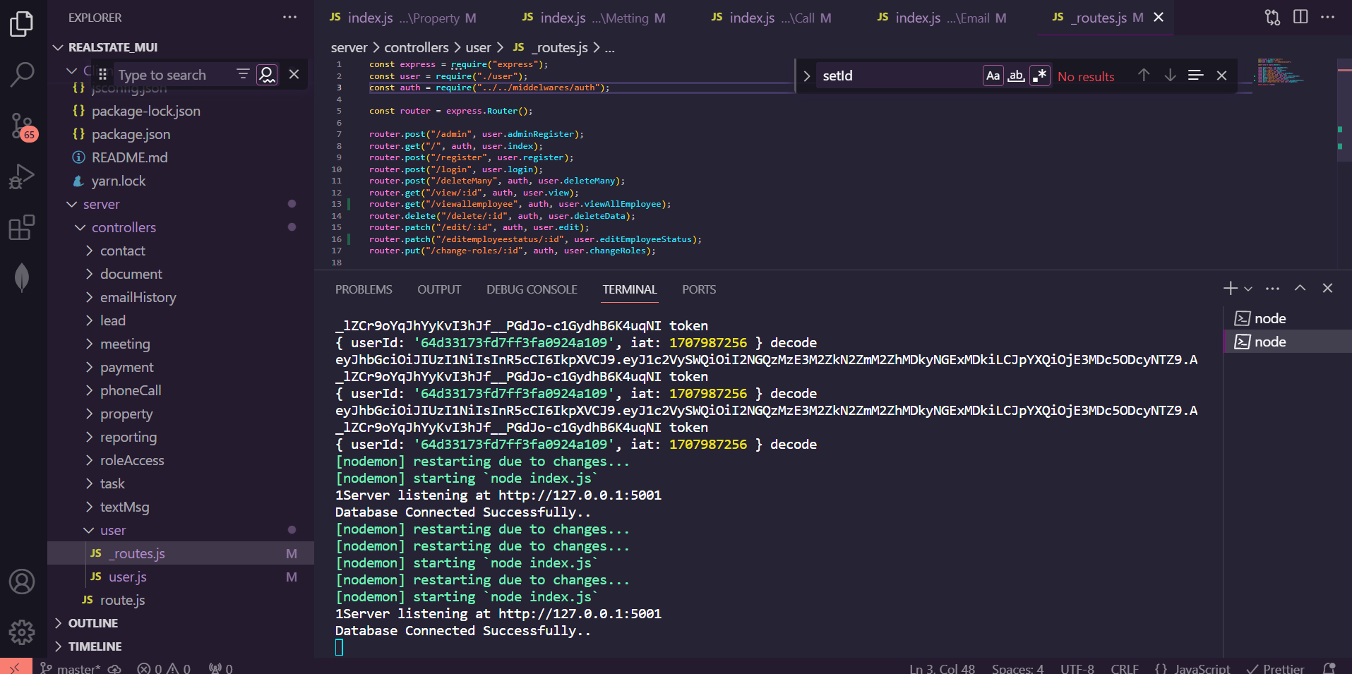 In terminal backend code running on port at http://127.0.0.1:5001/ that looks like this: