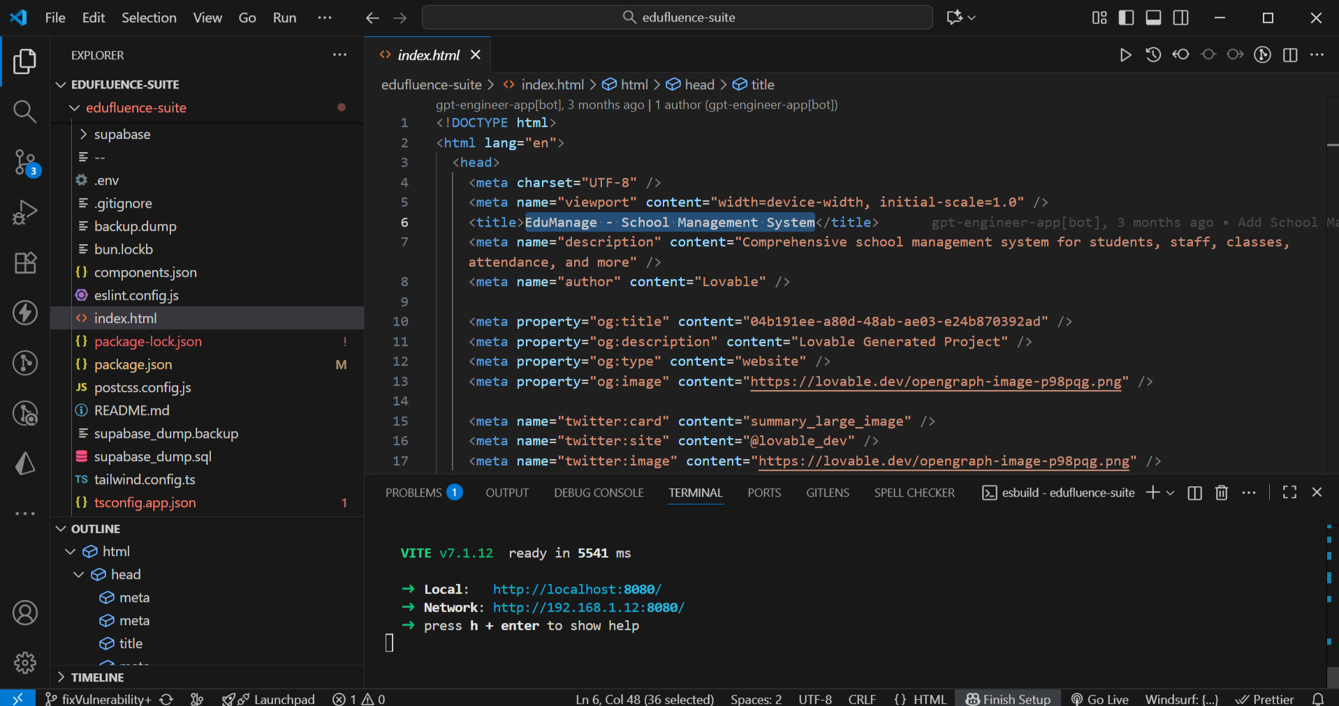 EduManage uses Supabase as the backend for PostgreSQL database, authentication, file storage, and real-time features. You must set up Supabase before running the project.