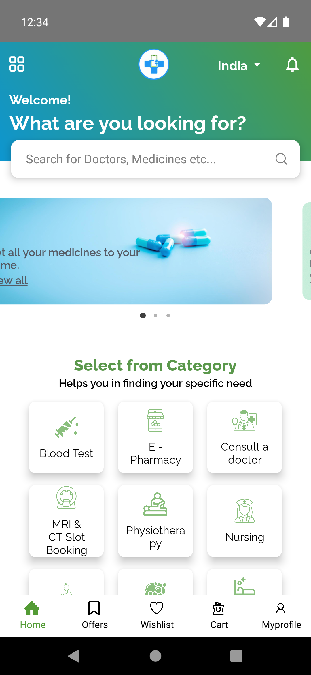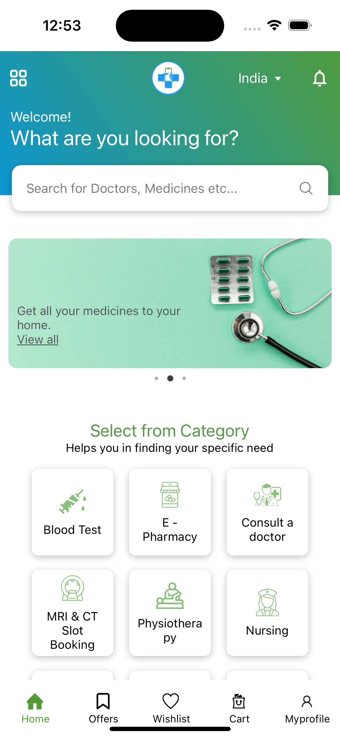 Above illustration demonstrates the Home Page of the Medical App in IOS and ANDROID.