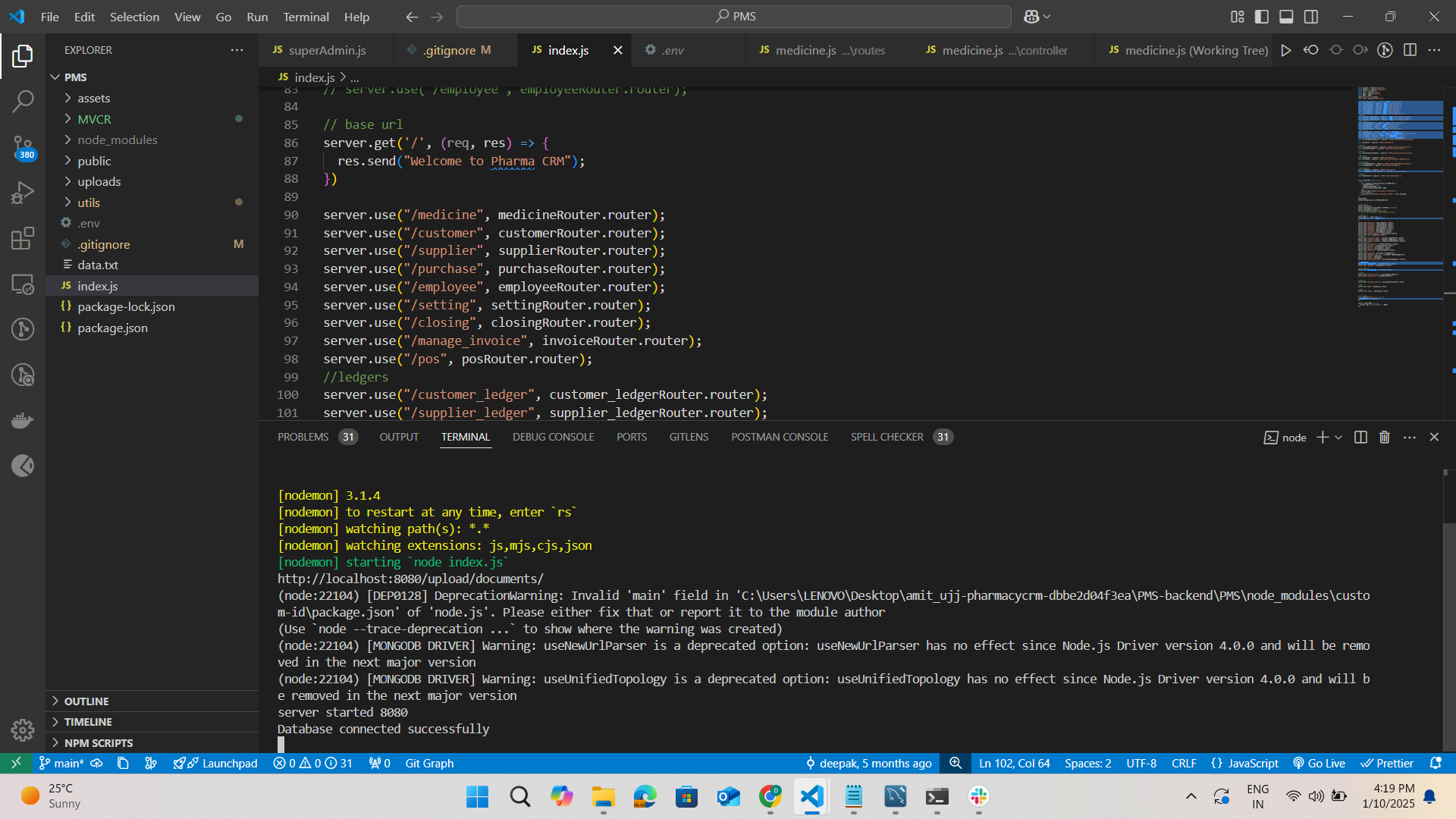 In terminal backend code running on port at http://localhost:8080/ that looks like this: