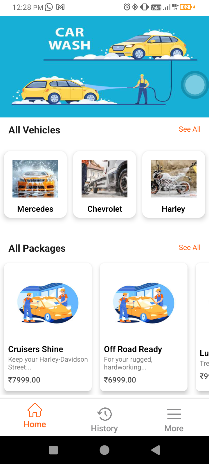 Above illustration demonstrates the Home Page of the WashFleet in IOS and ANDROID.