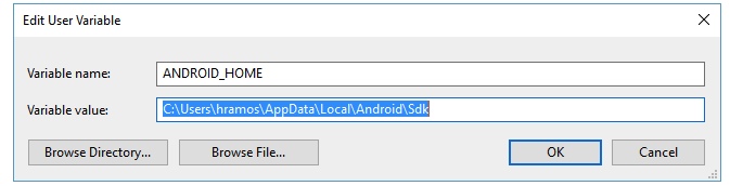 The React Native tools require some environment variables to be set up in order to build apps with native code.