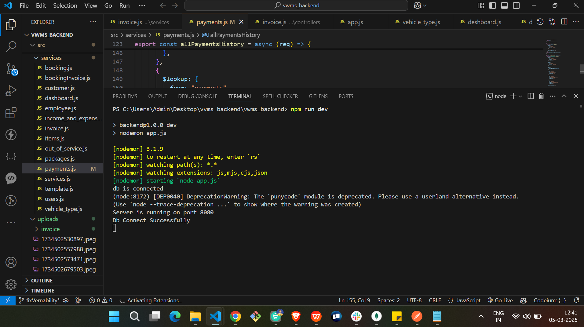 In terminal backend code running on port at http://localhost:8080/ that looks like this: